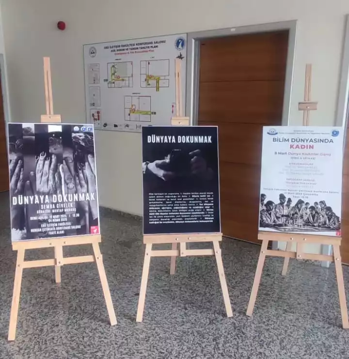 “Dünyaya Dokunmak” Etkinlikte ilk olarak, Erciyes Üniversitesi İletişim Fakültesi öğretim üyesi Dr. Semra Civelek tarafından hazırlanan “Dünyaya Dokunmak” Konulu fotoğraf sergisinin açılışı gerçekleştirilerek, davetliler tarafından gezildi. Serginin ardından düzenlenen söyleşinin açılışında konuşan Rektör Yardımcısı Prof. Dr.Cevdet Kırpık organizasyonda emeği geçenlere teşekkür etti. Prof. Dr. Kırpık: “Bir tarihçi ve eğitimci olarak kızlarımızın 19. Yüzyıldan itibaren, ortaöğretime sonra liseye ardından Osmanlı’nın son döneminde de üniversiteye başladıklarını biliyoruz. Cumhuriyet dönemine gelindiğinde de yalnız üniversiteyi bitiren değil, aynı zamanda bilim üreten kadınlarımız vardı.” diye konuştu.